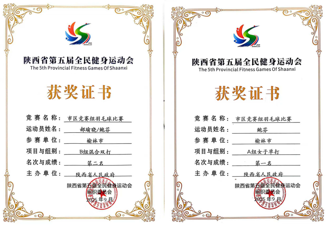 9月27日,“全民健身、运动三秦” 陕西省第五届全民健身运动会暨2025年陕西省群众体育赛事五级联赛羽毛球比赛(省级总决赛)商洛市体育馆落幕,榆林学院绥德师范学院教师鲍芬在比赛中斩获女子单打冠军、混合双打亚军的优异成绩。