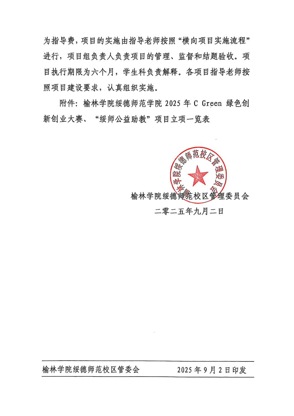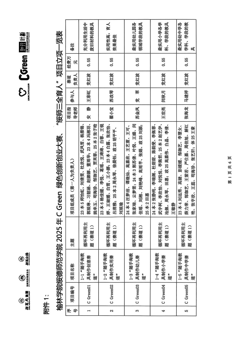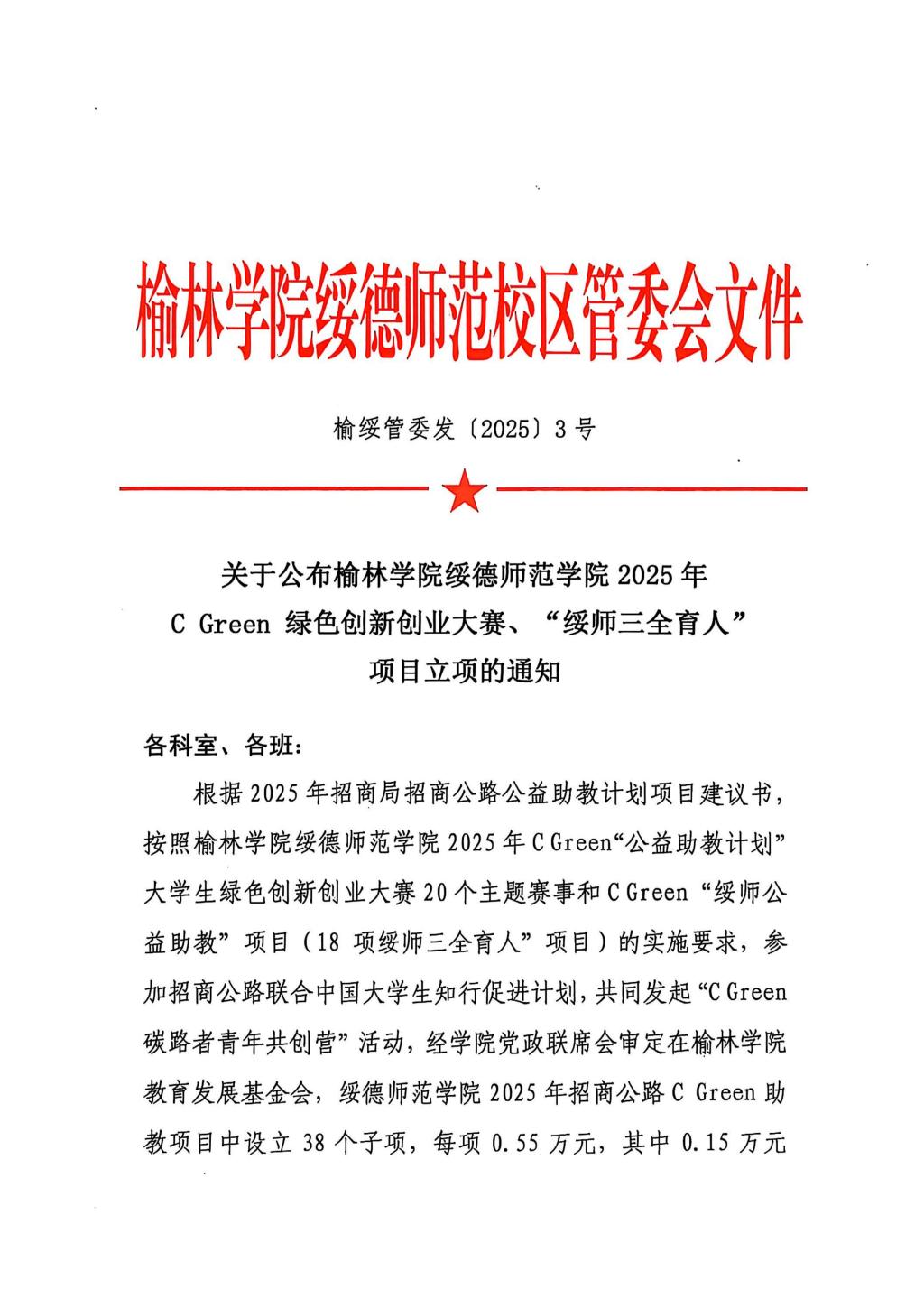 关于公布榆林学院绥德师范学院2025年 CGreen绿色创新创业大赛、“绥师三全育人” 项目立项的通知